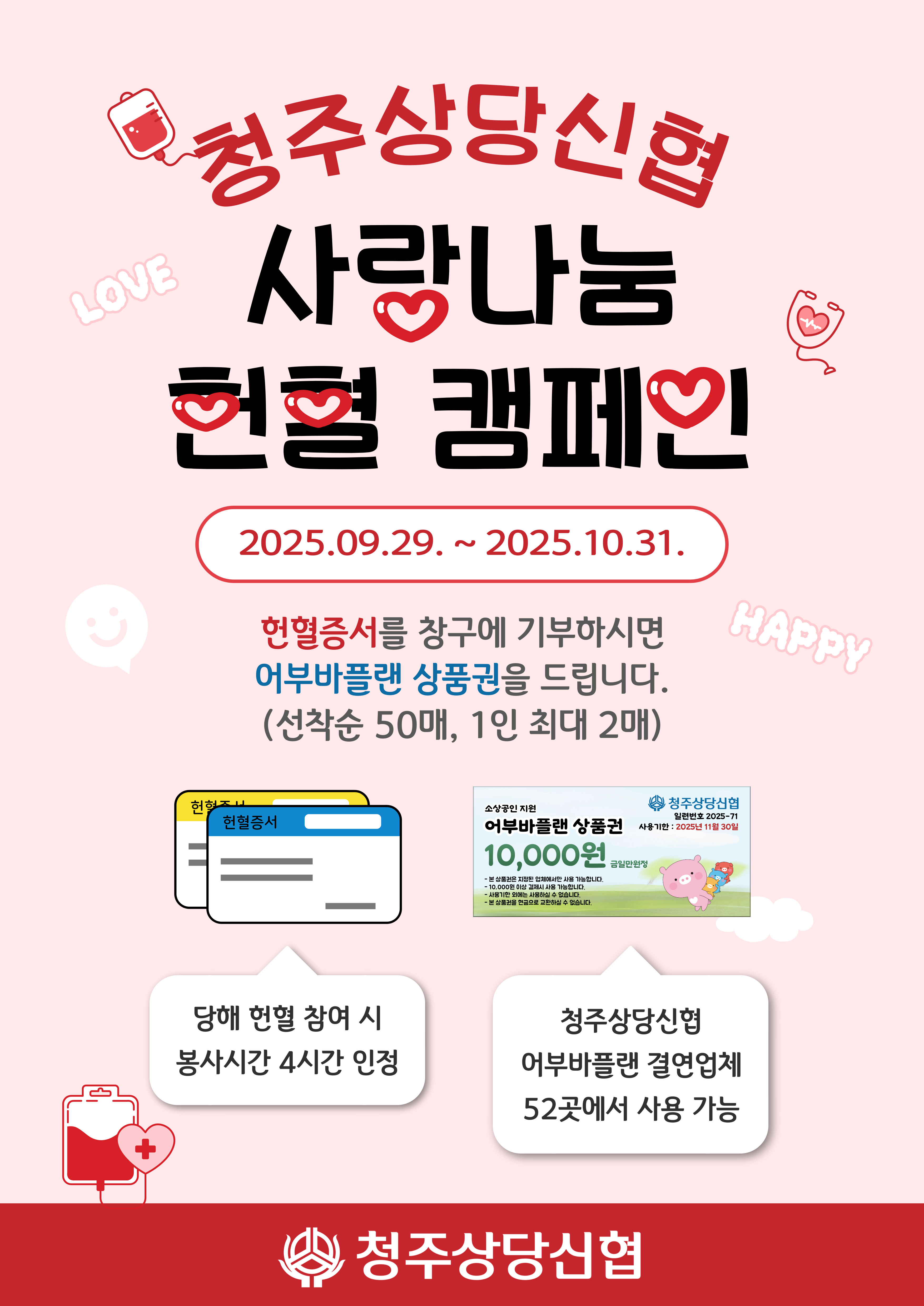 청주상당신협 사랑나눔 헌혈 캠페인에 동참해주세요!